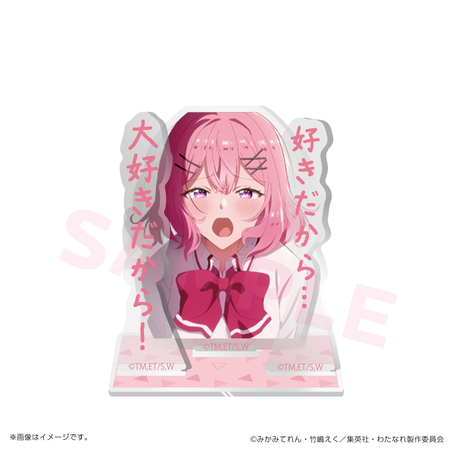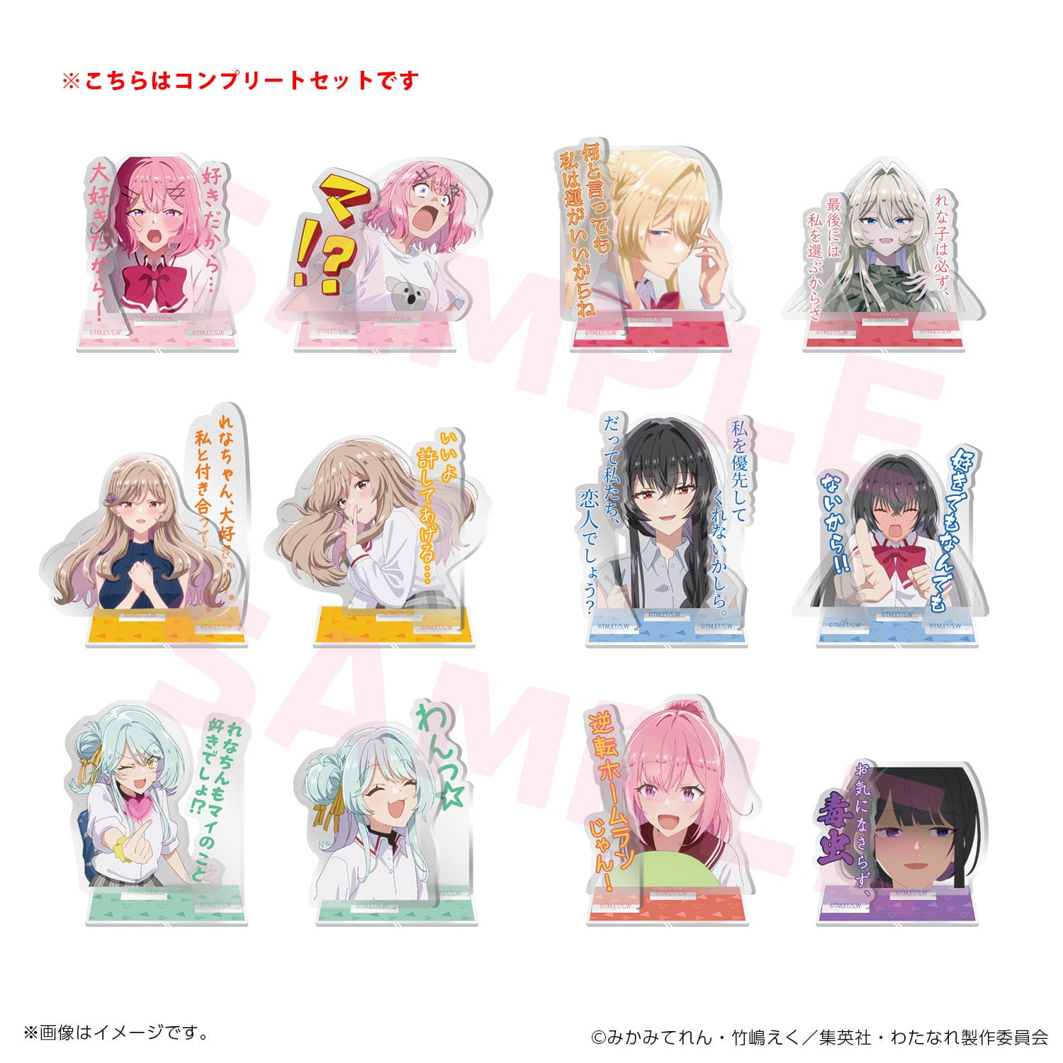 「わたしが恋人になれるわけないじゃん、ムリムリ!(※ムリじゃなかった!?)」TV本編中の名台詞とキャラがセットになったアクリルスタンド。全12種。